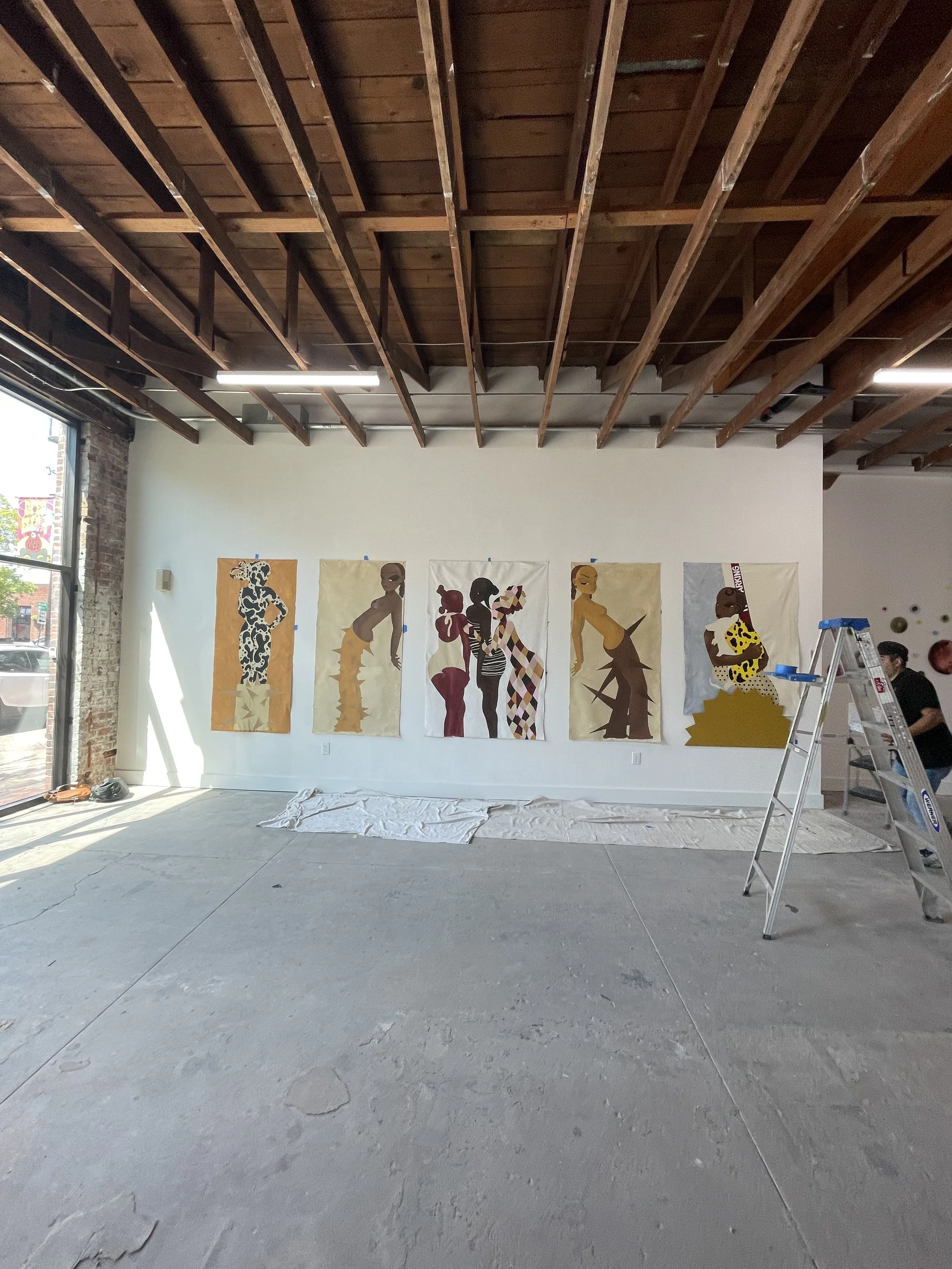 I’m a twenty one year old multidisciplinary artist. I’ve been practicing street art since 2023 in hopes of becoming a full time muralist. My work is focused around reexamining the public representation of Black and Brown people, using patterns, colors and shapes as a form of visual camouflage. I aim to keep my references rooted in cultural identity while examining evolution of that display